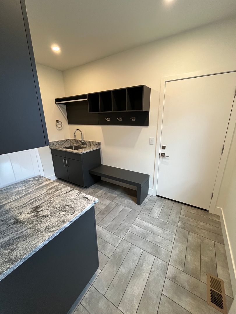 -Large laundry room off garage with sink and bench - perfect for gear drop after a day of play