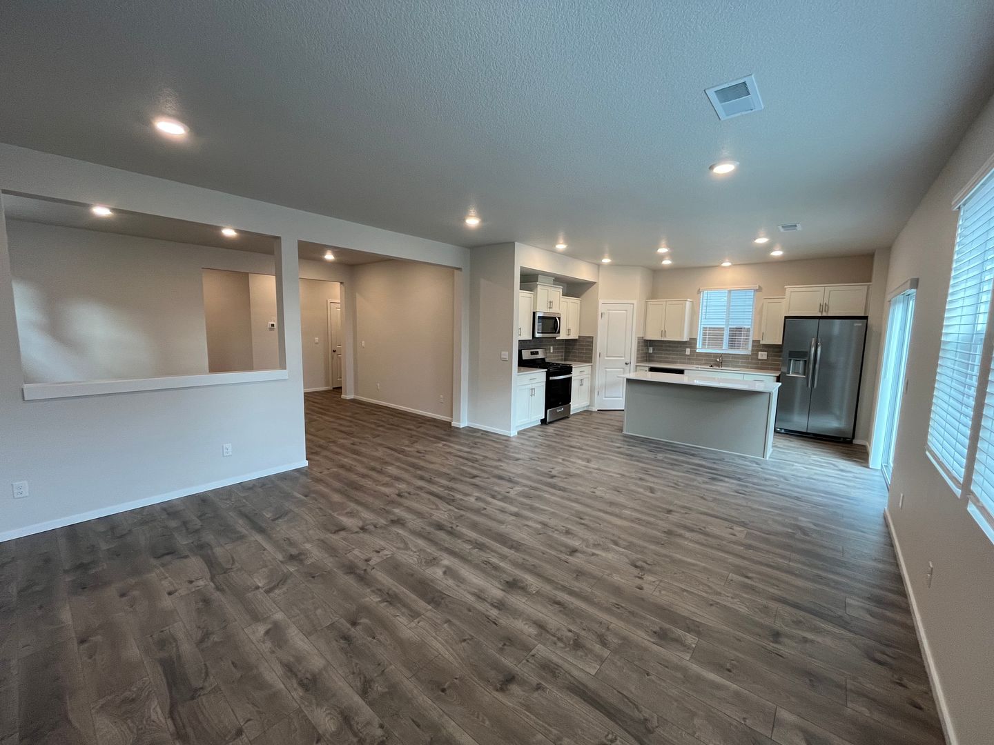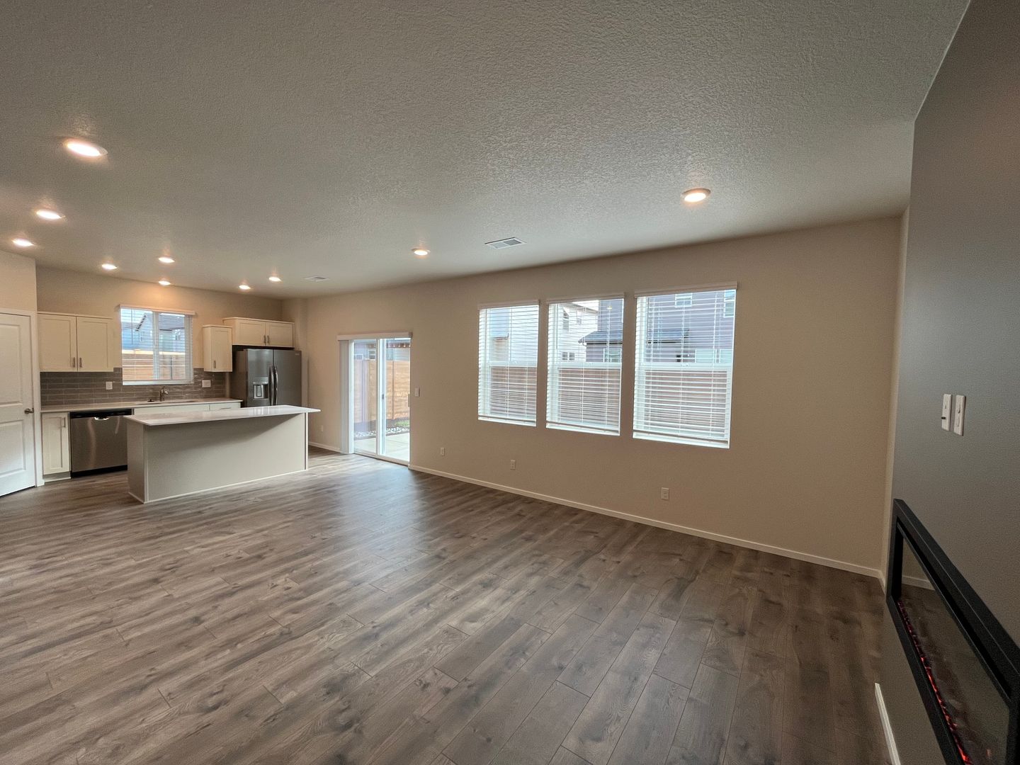 Travel deeper through the home and enjoy the electric fireplace with wood-look log set and blower that puts out heat. Ask about installing a mounted TV above the fireplace for one living room focal point.