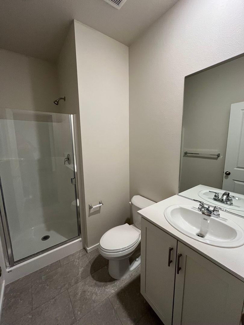 The main level also features a good-sized bedroom and separate, full bath with tub-less shower.