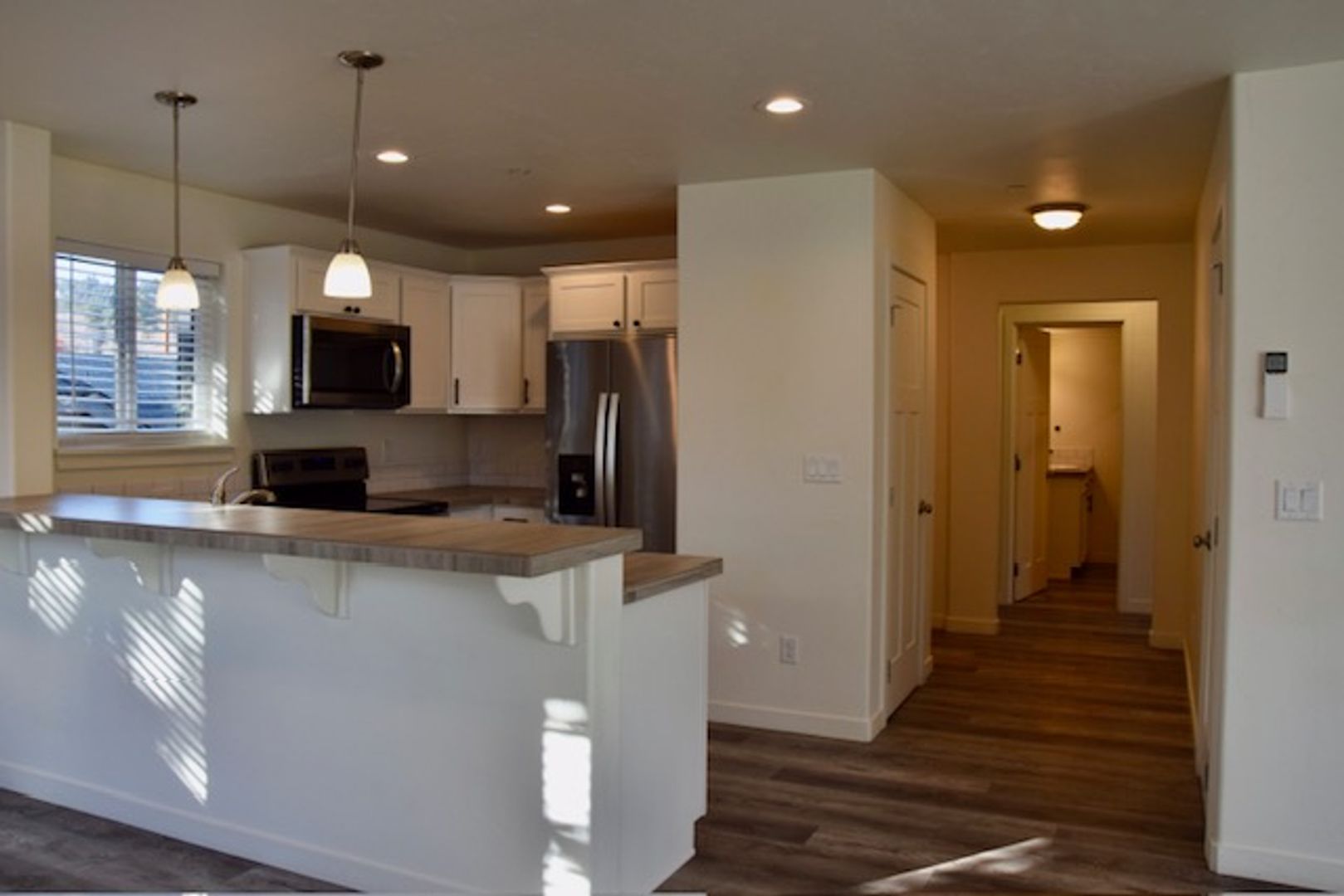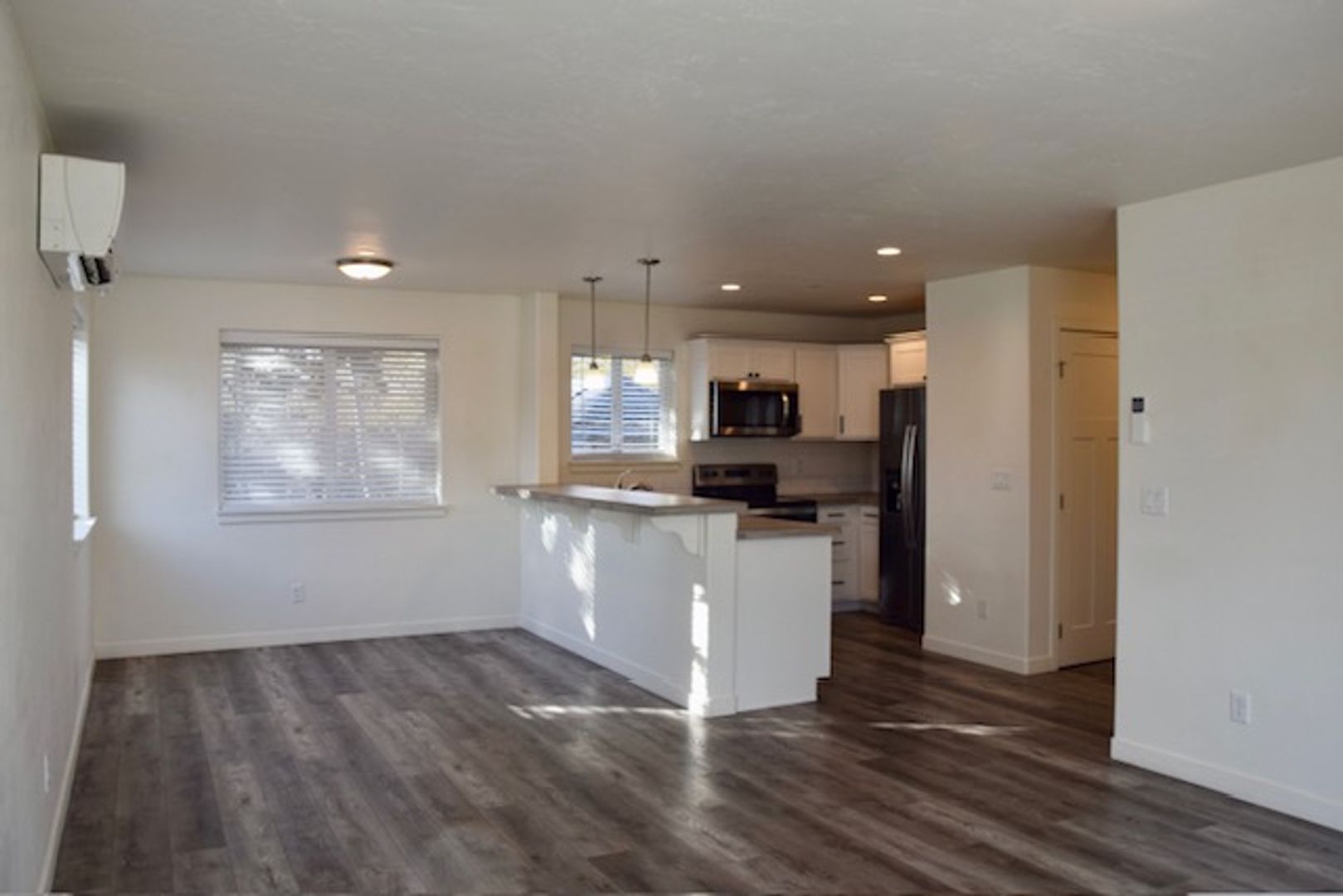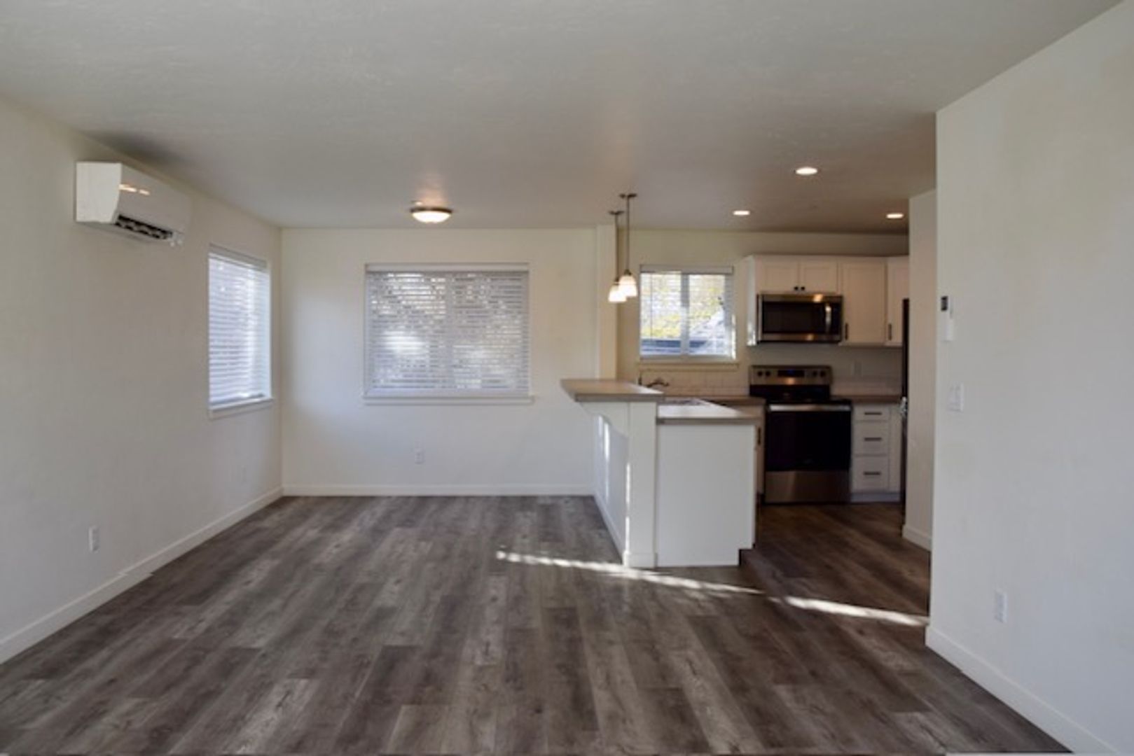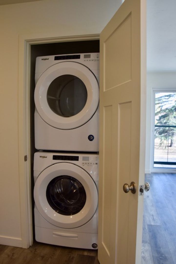 Newer hard surface flooring throughout, stackable W/D in unit for your convenience.