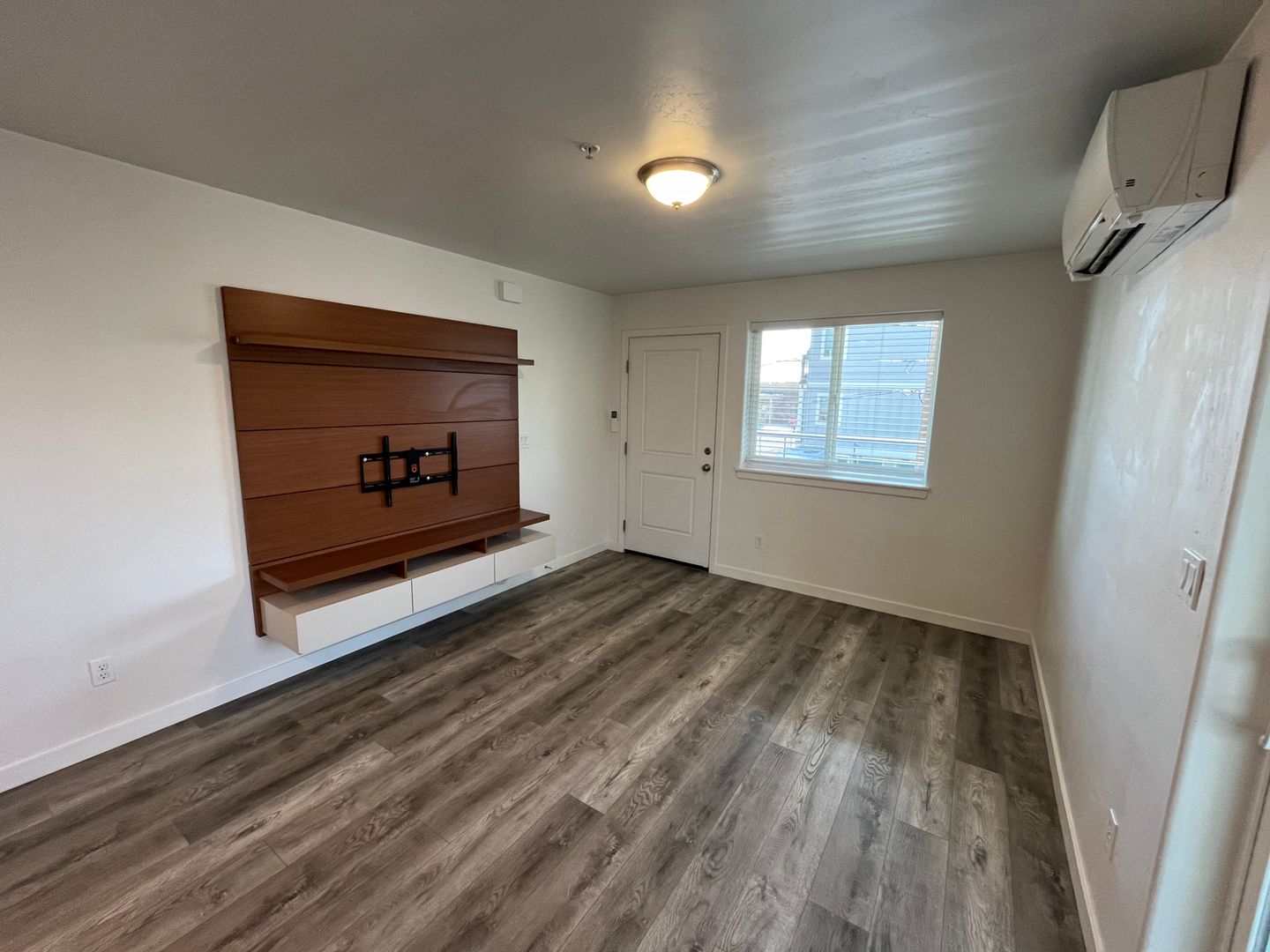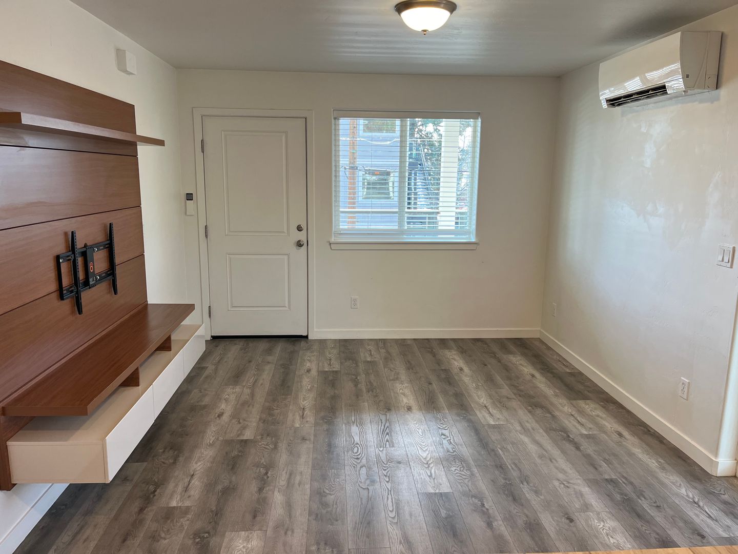 Newer construction one bedroom unit conveniently located off Newport and NW 8th Street! Laminate floors throughout with spacious kitchen and lots of natural light. Custom built-in entertainment center for added storage. Large breakfast bar, stainless appliances, full-size W/D, and cute deck space. Off-street parking space and a small on-site storage unit is included with rent.