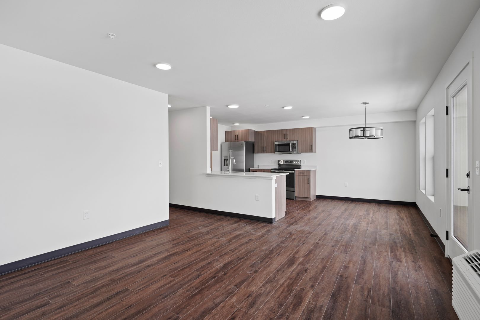 Current photos are virtually staged. Apartments come unfurnished.