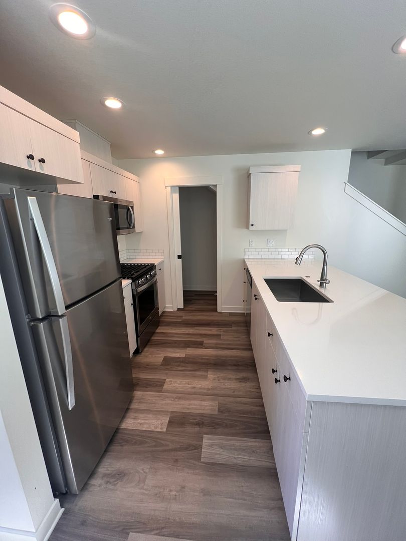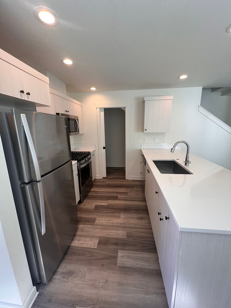 Inside, you'll find a bright and open layout featuring modern stainless-steel appliances, gas stove top, ample cabinet space, and sleek finishes throughout. The spacious living area flows effortlessly into the kitchen and dining area, ideal for both relaxing nights in and entertaining guests.